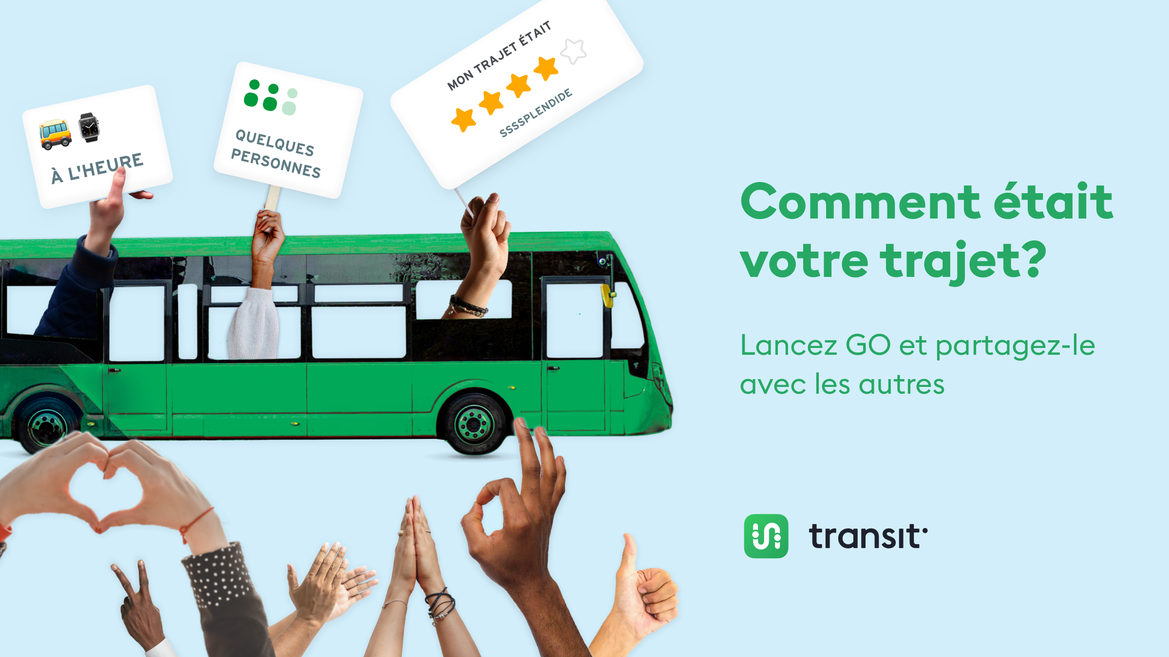 En utilisant GO dans Transit, vous partagez votre avis avec nous et avec d’autres personnes à bord. C’est parti 👉 Lien vers Transit via l'URL personnalisée